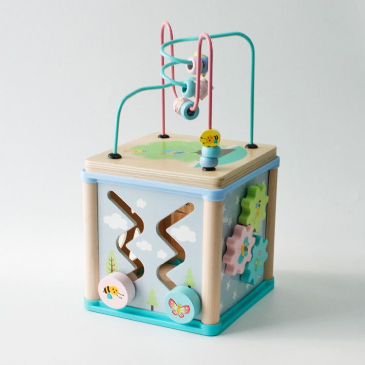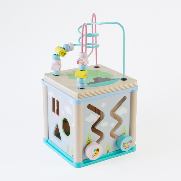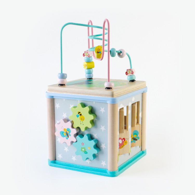 This fun little 5 in 1 activity cube will provide hours of fun for your little ones encouraging learning and development whilst playing. The 5 activities include: Rotatable butterflies, shape sorter, picture puzzles, bead maze and two movable cogs.